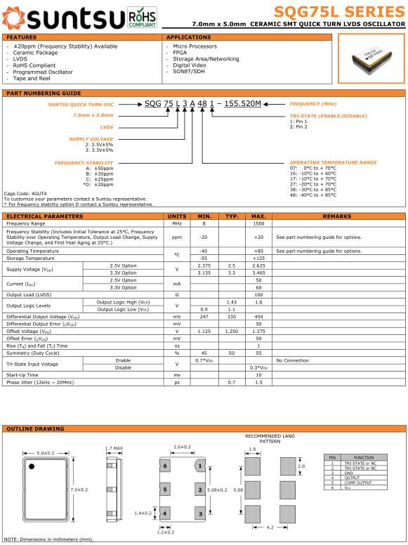 美國Suntsu晶振公司成立于2002年,是新生代頻率元器件廠商.suntsu Crystal也稱松圖晶振,總部位于美國加利福尼亞奧蘭治縣.與中韓臺合資成立.并專注于有源晶振,石英晶體振蕩器,SMD晶振等元件.Suntsu晶振,SQG75L晶振,SQG75L3A481-12.000M晶振.