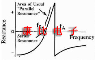 如果我們繼續增加頻率,我們將達到另一個零相位點,稱為"反"或"平行"諧振點.此時,晶體單元的電阻最大,電流最小.該頻率固有地不穩定,不應選擇作為振蕩器的工作頻率.圖2.0還示出了被識別為"通常并聯共振區域"的區域.出于我們的目的,我們將該區域內的頻率視為"并行"頻率.