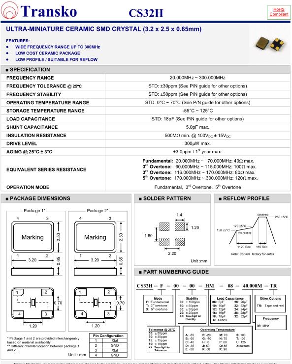 SPECIFICATION-Transko晶振 | CS32H晶振 |