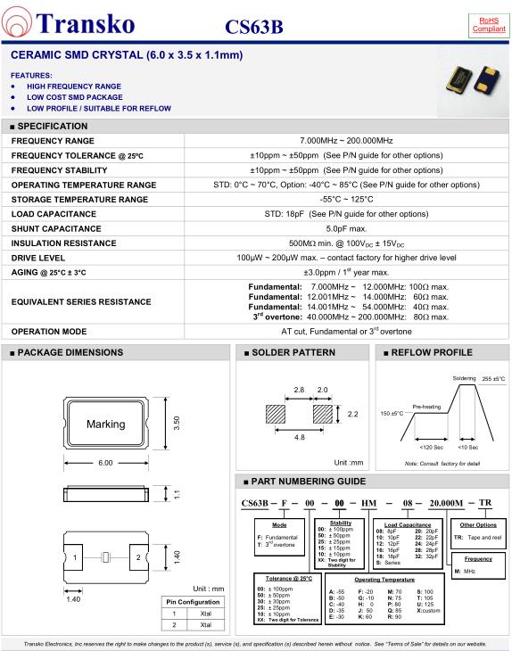 SPECIFICATION-Transko晶振 | CS63B晶振 |