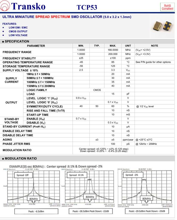 Transko晶振,TCP53晶振,TCP53-H50HM33ST-A-24.000M-TR晶振,5032mm體積的石英晶體振蕩器,有源晶振,該產(chǎn)品可驅(qū)動2.5V的溫補晶振,壓控晶振,VC-TCXO晶體振蕩器產(chǎn)品,電源電壓的低電耗型,編帶包裝方式,可對應自動高速貼片機自動焊接,及IR回流焊接(無鉛對應),為無鉛產(chǎn)品,超小型,質(zhì)地輕.產(chǎn)品被廣泛應用到集成電路,程控交換系統(tǒng),無線發(fā)射基站.