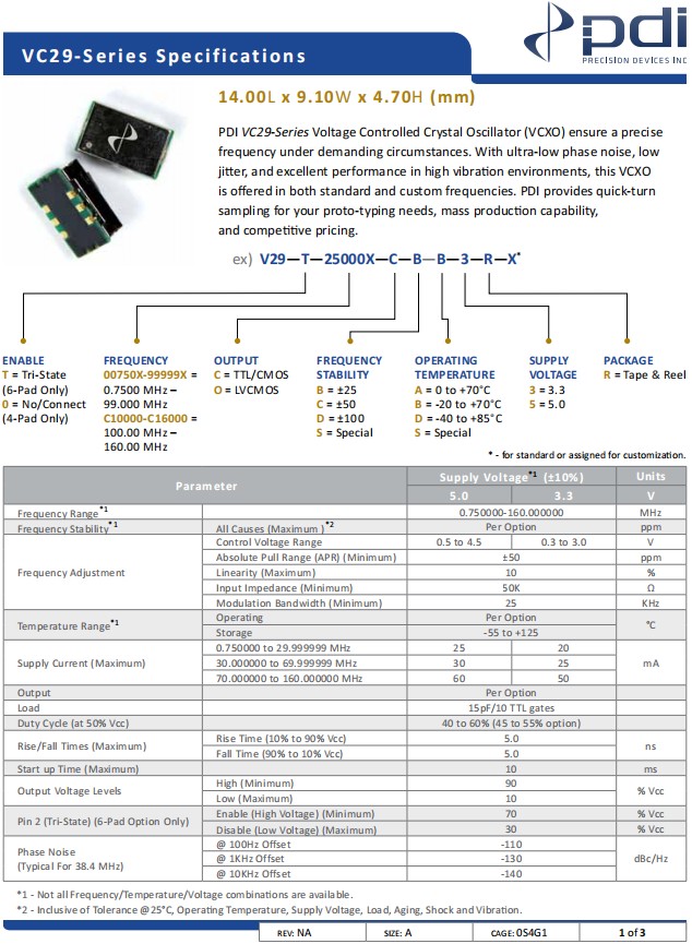 Wi2wi壓控晶振,V29-T-C12000-C-B-D-3-R-X,VC29石英晶振,參數表