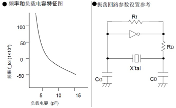 如果振蕩電路中負(fù)載電容的不同,可能導(dǎo)致振蕩頻率與設(shè)計(jì)頻率之間產(chǎn)生偏差,如下圖所示.電路中的負(fù)載電容的近似表達(dá)式 CL≒CG × CD / (CG+CD) + CS.