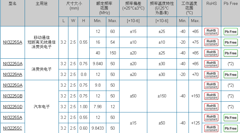 諧振器NX3225SA,進(jìn)口SMD晶體,NDK晶振北京經(jīng)銷(xiāo)商超小型表面貼片型SMD晶振,最適合使用在汽車(chē)電子領(lǐng)域中,也是特別要求高可靠性的引擎控制用CPU的時(shí)鐘部分.低頻晶振可從7.98MHz起對(duì)應(yīng),小型,超薄型具備強(qiáng)防焊裂性,石英晶體在極端嚴(yán)酷的環(huán)境條件下也能發(fā)揮穩(wěn)定的起振特性,產(chǎn)品本身具有耐熱,耐振,耐撞擊等優(yōu)良的耐環(huán)境特性,滿足無(wú)鉛焊接以及高溫回流溫度曲線要求,符合AEC-Q200標(biāo)準(zhǔn).