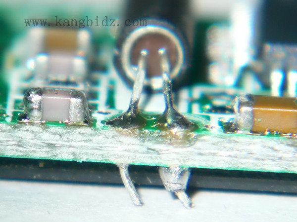 康比電子提醒:焊點(diǎn)也不是錫多、錫大為好,相反,這種焊點(diǎn)虛焊的可能性更大,有可能是焊錫堆積在上面,而不是焊在上面。若一次上錫量不夠,可再次補(bǔ)焊,但一定要等前次上的錫一同被熔化后再移開電烙鐵;若一次上錫量太多,可用烙鐵頭帶走適量。