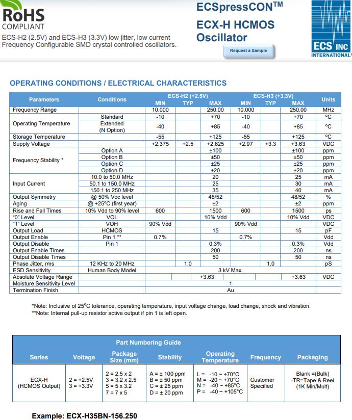 ECX-H35BN-100.000 | ECS石英晶體振蕩器 | ECSpressCON™ ECX-H | 100MHz | -40°C ~ 85°C |