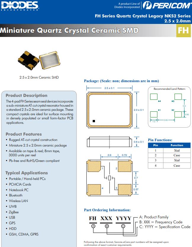 更多>>臺灣Diodes晶振發行緊湊型的無源音叉晶體FH1200004