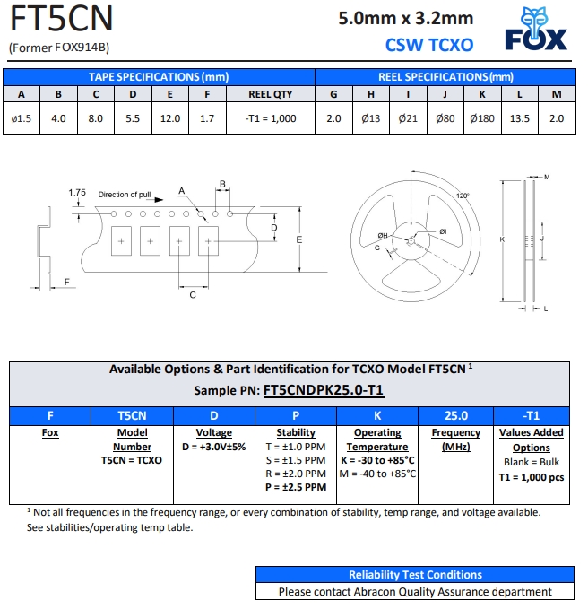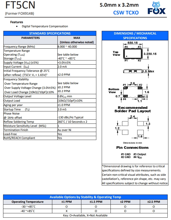 FOX914B-19.200 | Fox振蕩器 | FOX914 | TCXO | 19.2MHz | 3V |