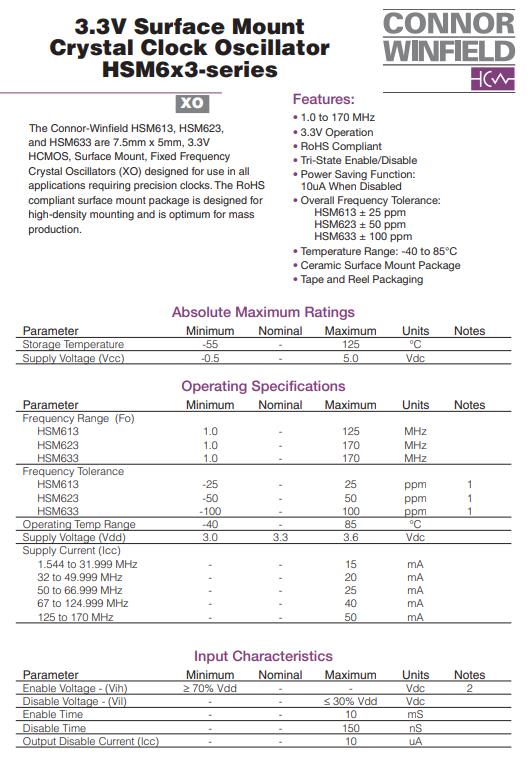 HSM613-125.0M | Connor-Winfield振蕩器 | HSM6 | 125MHz | -40°C ~ 85°C |