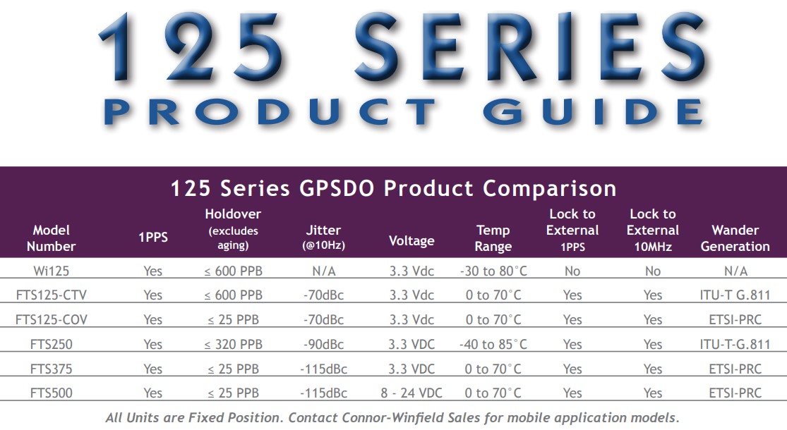 125系列GPSDO產品對比