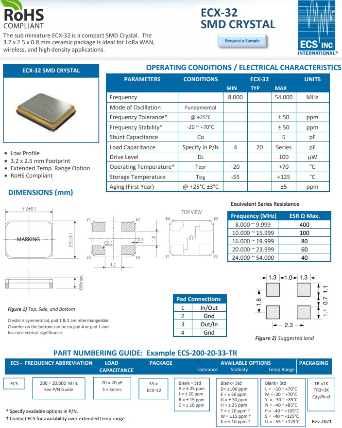 ECS-320-S-33-TR | ECS Crystal | ECX-32 | 32MHz | -20°C ~ 70°C |