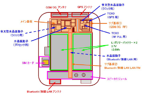 以蘋果公司的"iPad3G機型"為例,對水晶元件的使用方法進行說明.iPad內部的模式圖如圖1所示,使用用諧振器元件如表1所示.