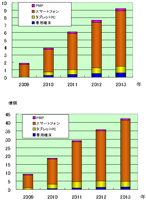 2009年的電子書籍臺數不到2億臺,但2010年為不到4億臺,約為2倍,預測2011年以后也會穩定增長的市場.