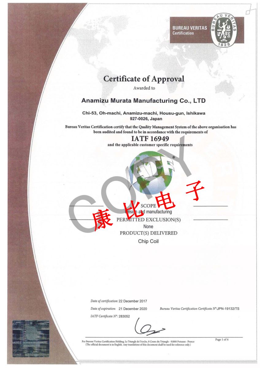 此文關鍵字: 村田制作所IATF16949汽車安全認證