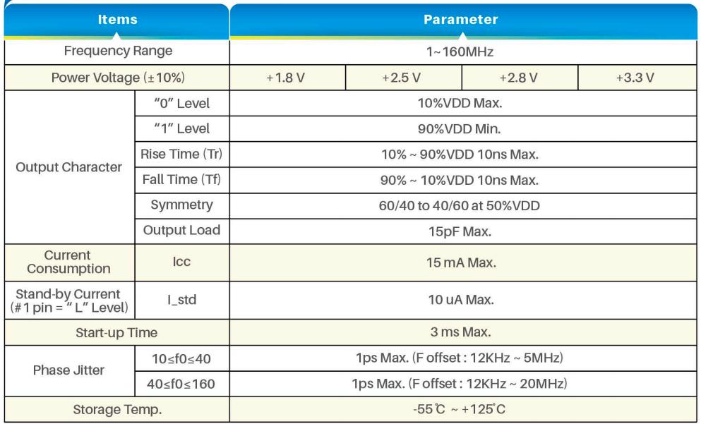 SSR033333I3CH | 加高有源振蕩器 | 33.333MHz 頻率穩定度:±50ppm 工作電壓:3V~3.6V 供電電流:25mA 工作溫度:-10℃~+70℃ | 33.333MHZ | 3V~3.6V | ±50ppm |