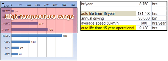 在平均壽命為15年的情況下,乘用車僅在大約7%到10%的時間內被主動駕駛.在此期間,它在通常由溫度任務剖面描述的溫度曲線上操作.然而,由于晶振電子元件放置在汽車中,電子產品的實際組裝和由于功率耗散引起的自熱效應,相關的結溫(Tj)更高,并且根據汽車應用,它可以達到170°C的溫度.基于汽車任務概況,這轉化為高溫工作壽命(HTOL)應力條件,通常在150°C至160°C范圍內運行1000小時至3000小時. IDT晶振歐洲審計制度