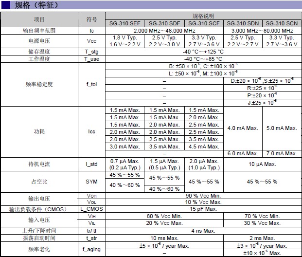 愛普生晶振,SG-310SCN,石英晶體振蕩器