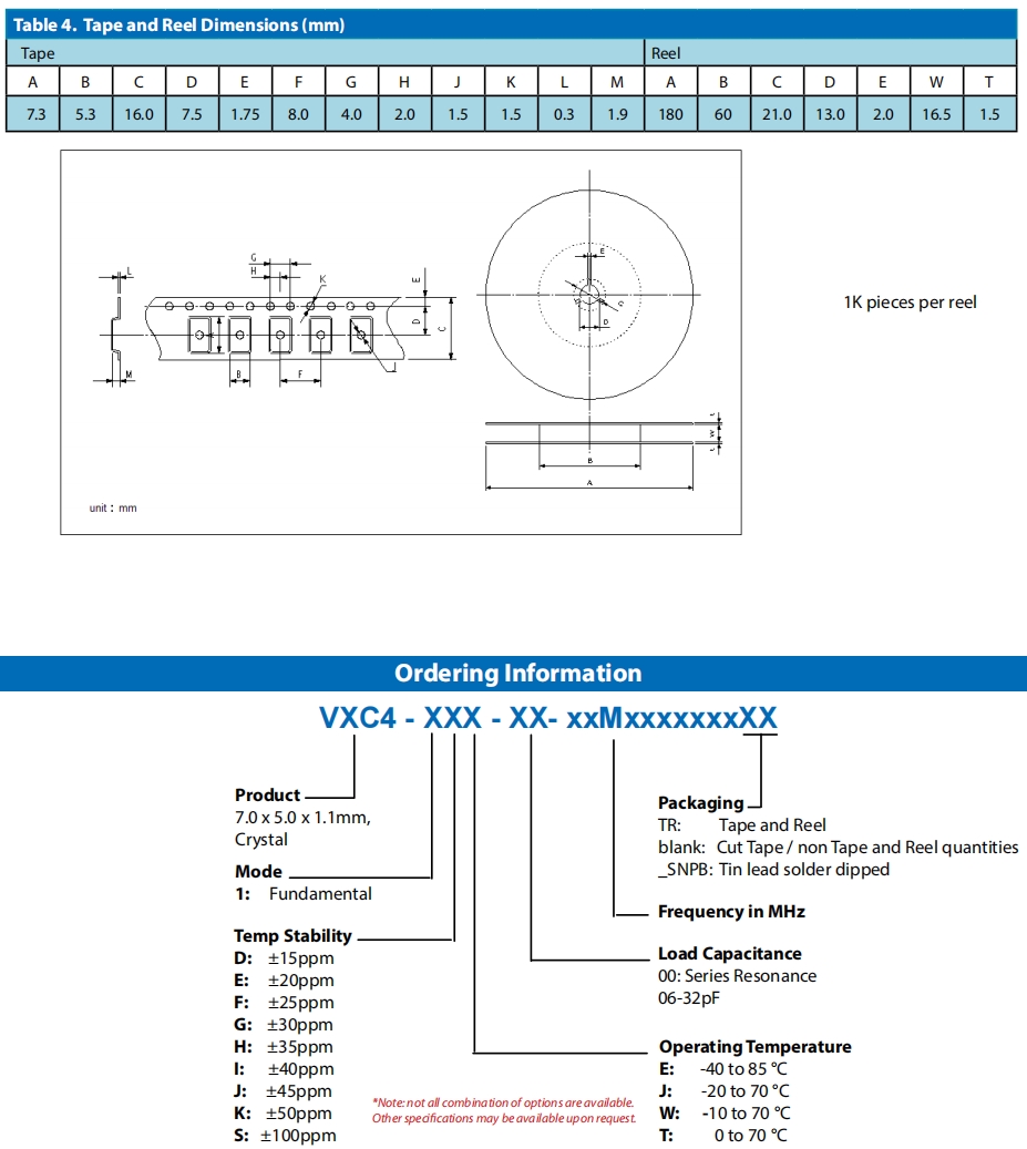 用于JEDEC J-STD-020D.01回流條件的耐熱可用性需個別判斷。請聯系我們以便獲取相關信息。Vectron晶振,VXC4晶振,7050mm晶振.