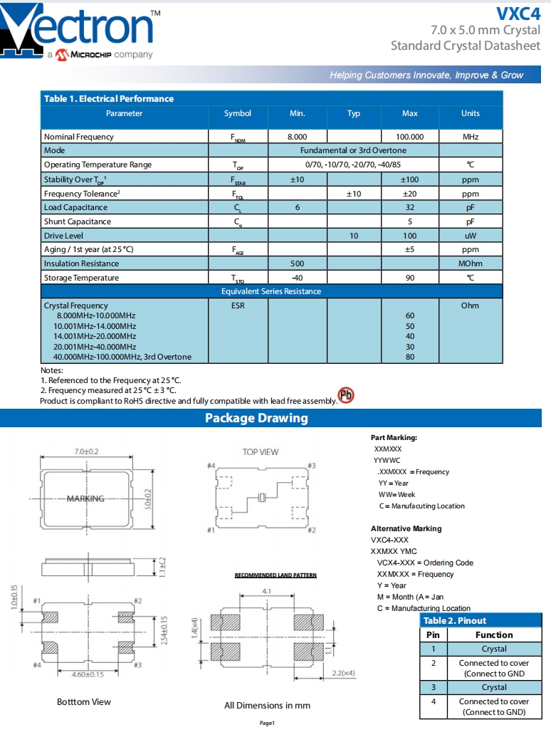 Vectron晶振規格 | 單位 | VXC4貼片晶振頻率范圍 | 石英晶振基本條件 |