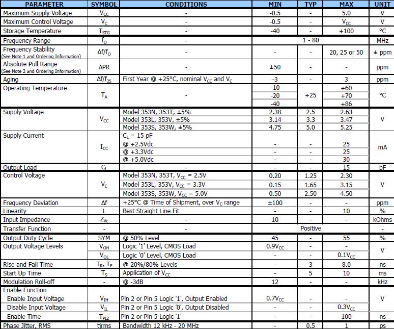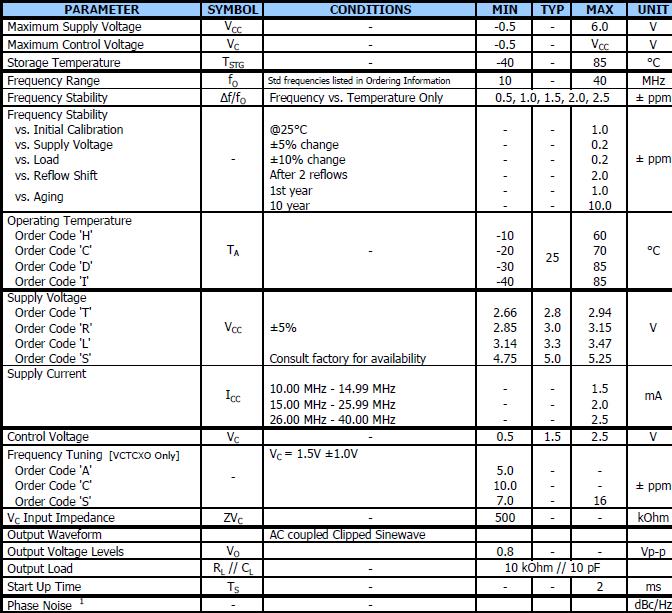 頻率老化程度 | f_age | ±3x10-6 | +25±3°C,第一年 |