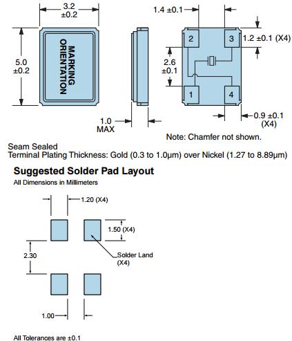 在一個不同擴張系數電路板(環氧玻璃)上焊接陶瓷封裝石英晶振時,在溫度長時間重復變化時可能導致端子焊接部分發生斷裂,請事先檢查焊接特性。Ecliptek晶振,貼片晶振,EA3250JA12-8.000M晶振