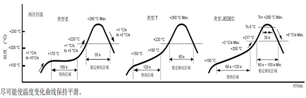 將晶振加熱包裝材料至+150°C以上會(huì)破壞產(chǎn)品特性或損害產(chǎn)品。如需在+150°C以上焊接石英晶振,建議使用SMD晶振產(chǎn)品。在下列回流條件下,對(duì)石英晶振產(chǎn)品甚至SMD晶振使用更高溫度,會(huì)破壞晶振特性。建議使用下列配置情況的回流條件。安裝這些貼片晶振之前,應(yīng)檢查焊接溫度和時(shí)間。同時(shí),在安裝條件更改的情況下,請(qǐng)?jiān)俅芜M(jìn)行檢查。如果需要焊接的晶振產(chǎn)品在下列配置條件下進(jìn)行焊接,請(qǐng)聯(lián)系我們以獲取耐熱的相關(guān)信息。