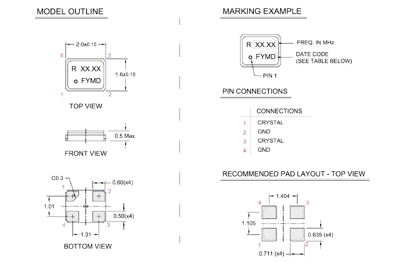 頻率溫度特征 | f_tem | ±30 × 10-6/-20°C ~ +70°C | 超出標準的規格請聯系我們. |