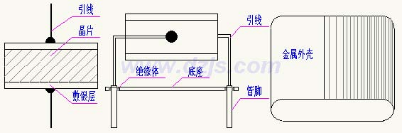石英晶體振蕩器是利用石英晶體(二氧化硅的結晶體)的壓電效應制成的一種諧振器件,它的基本構成大致是:從一塊石英晶體上按一定方位角切下薄片(簡稱為晶片,它可以是正方形、矩形或圓形等),在它的兩個對應面上涂敷銀層作為電極,在每個電極上各焊一根引線接到管腳上,再加上封裝外殼就構成了石英晶體諧振器,簡稱為石英晶體或晶體、晶振.其產品一般用金屬外殼封裝,也有用玻璃殼、陶瓷或塑料封裝的 .為了防止 Ag電極被氧化 ,一般在封裝時充入 N2.下圖是一種金屬外殼封裝的石英晶體結構示意圖.