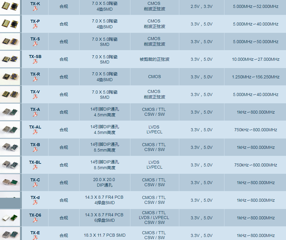 更多>>Transko晶振集團新系列高穩定性溫補晶振型號尺寸詳情表