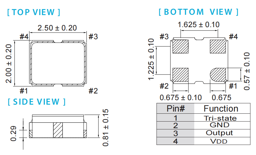 2520mm,OYKTGCJANF-0.032768,Taitien品牌,SMD晶振,32.768KHz,石英晶體振蕩器,尺寸圖